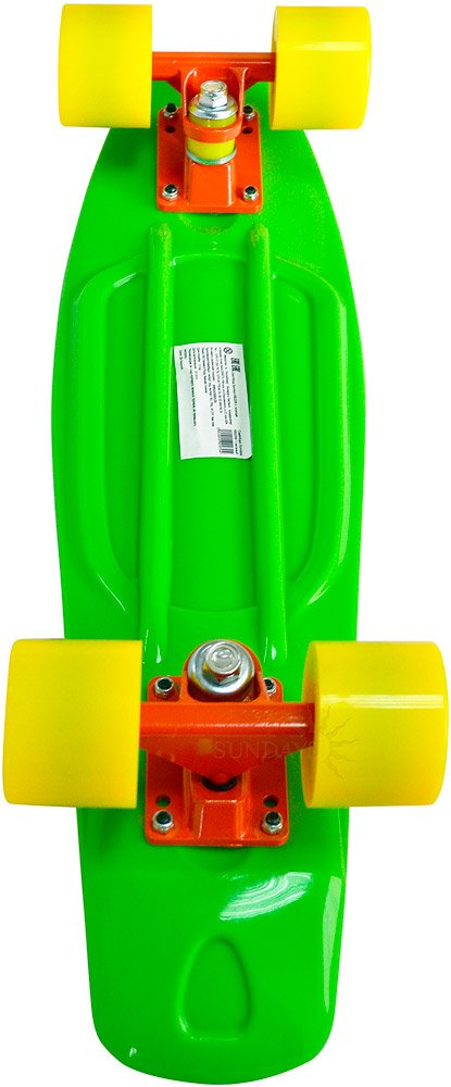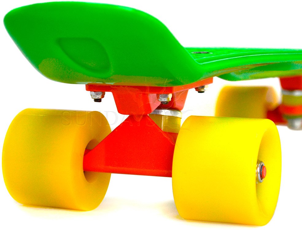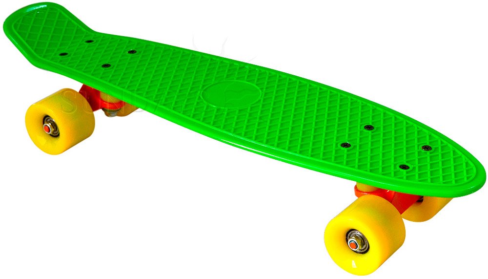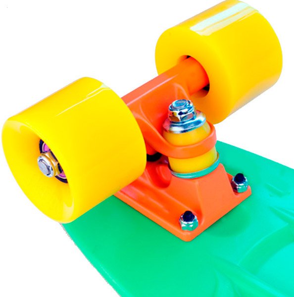 Пенниборд из пластика. Размер деки: 22x6". Подвеска: алюминий. Колеса: PU, 60x45 мм. Подшипники: АВЕС 5. Максимальная нагрузка: 80 кг. Вес: 2.7 кг.