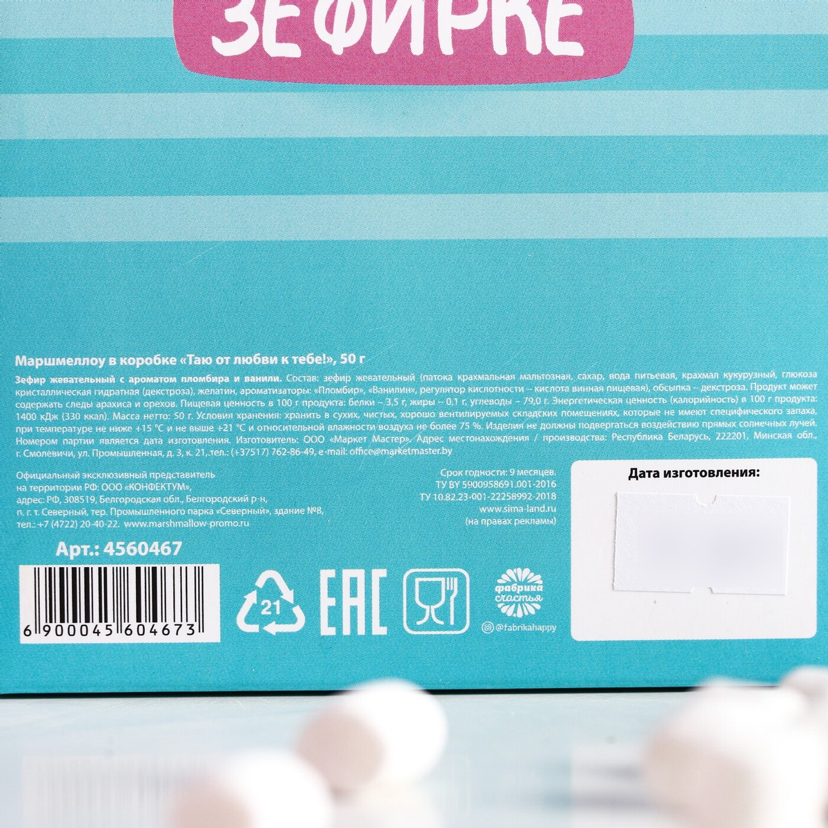 - Состав зефир жевательный (патока крахмальная мальтозная, сахар, вода питьевая, крахмал кукурузный, глюкоза кристаллическая гидратная (декстроза), желатин, ароматизаторы: «Пломбир», «Ванилин», регулятор кислотности – кислота винная пищевая), обсыпка: декстроза.