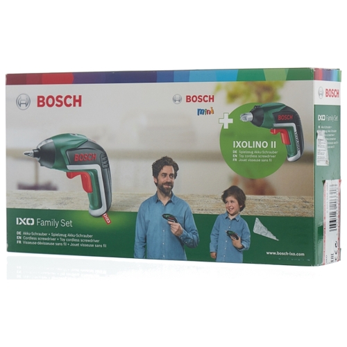 • Комплектация зарядное устройство, держатель с 10 битами, игрушечный шуруповерт IXOLINO