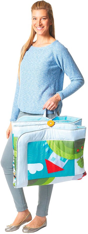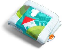 Развивающий коврик предназначен для деток с рождения. Коврик представляет собой полотно, состоящее из 12 квадратов. На каждом квадрате находятся различные забавные картинки и развивающие элементы. Можно стирать коврик в стиральной машине. Размеры: 150x100 см.