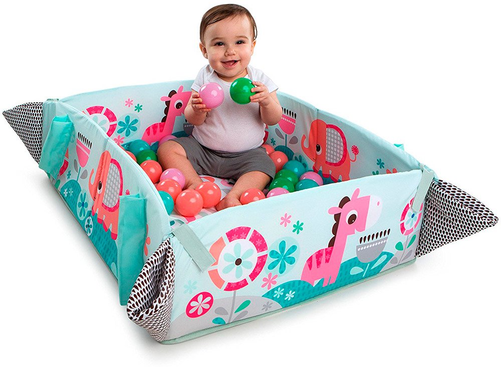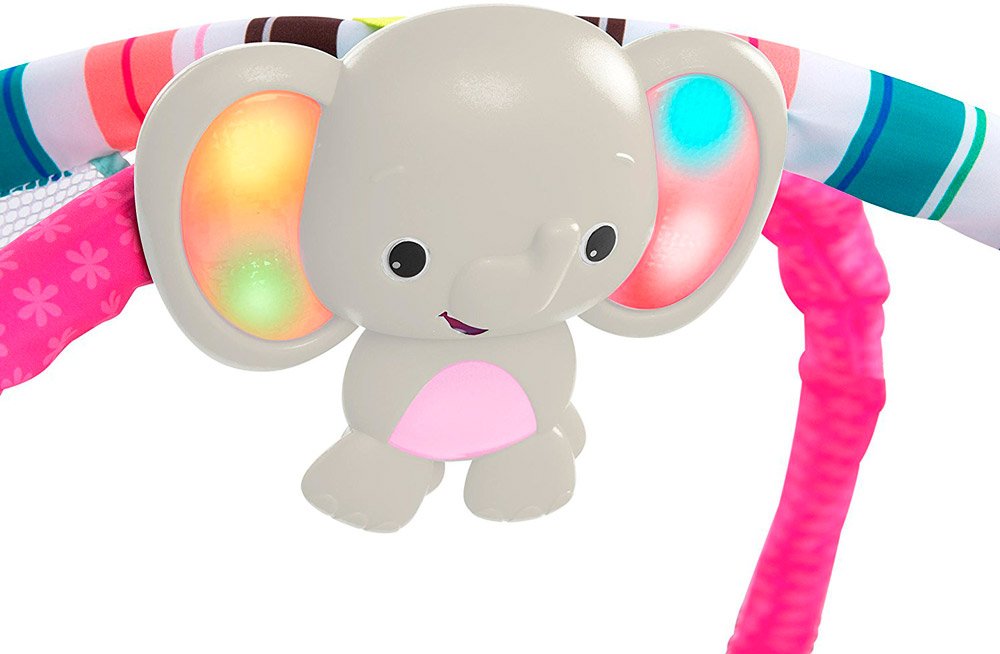 Развивающий коврик 5-в-1 для детей с рождения. Защитные бортики, которые можно трансформировать под потребности малыша. 2 съемные перекрестные дуги. Игрушки: слоник со световыми и звуковыми эффектами, зебра, обезьянка, безопасное зеркало, прорезыватели. Все игрушки съемные, их можно менять местами или использовать вне коврика.