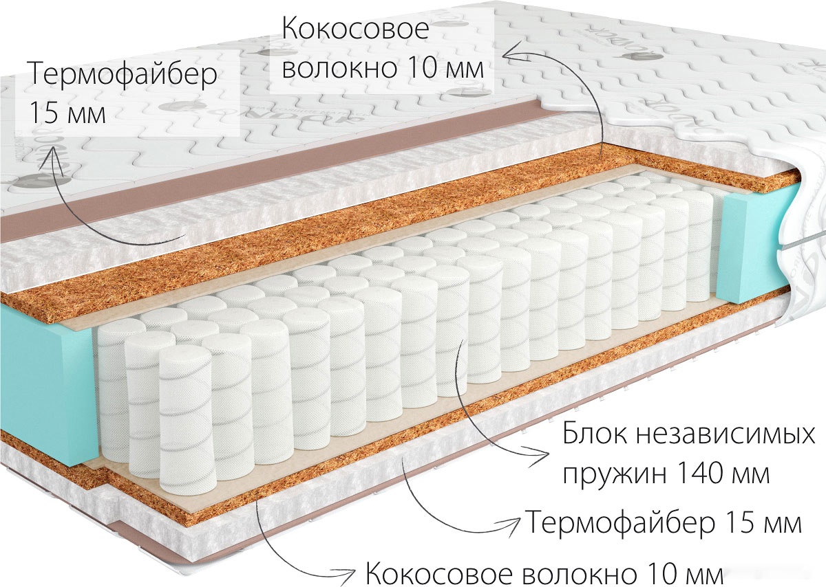 Ортопедический, независимый пружинный блок, жесткость: средний, 120 кг на место, чехол: жаккард, высота 19 см.