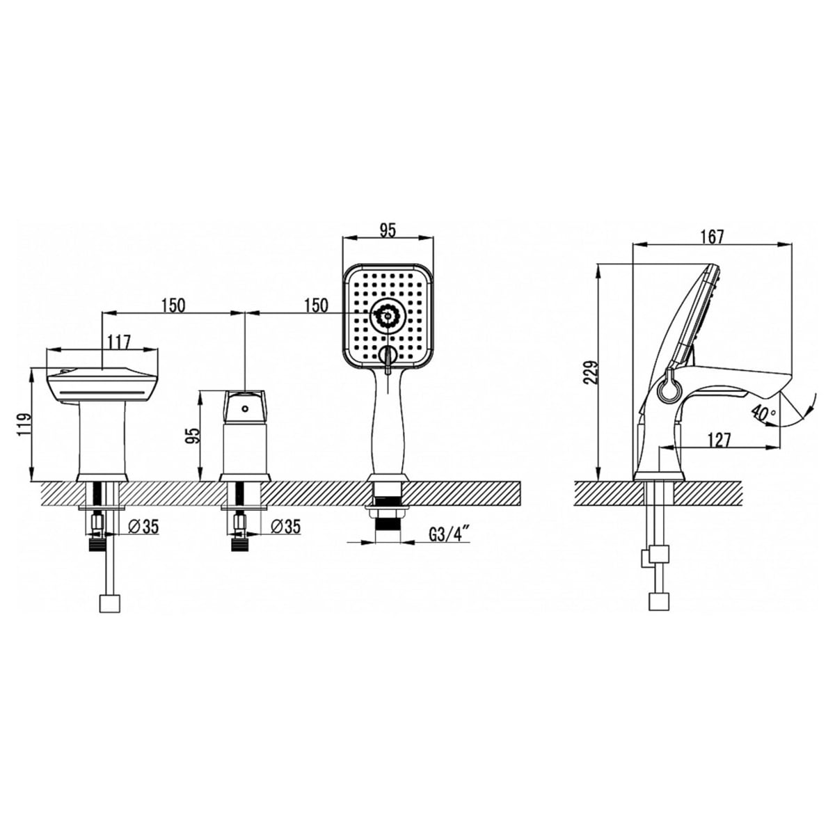 Смеситель для ванны LEMARK «UNIT» LM4545C