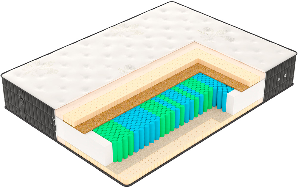 Ортопедический, независимый пружинный блок, жесткость: умеренно жесткий, средний, 170 кг на место, чехол: жаккард, высота 29 см.