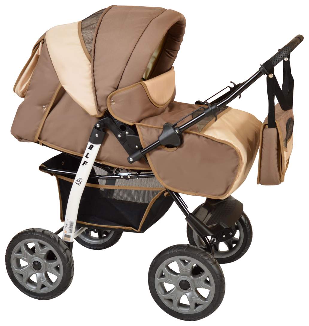 - Комплектация коляски бампер; дождевик; корзина; люлька-переноска; накидка на ножки; прогулочный блок; сумка для мамы; шасси с колесами