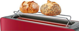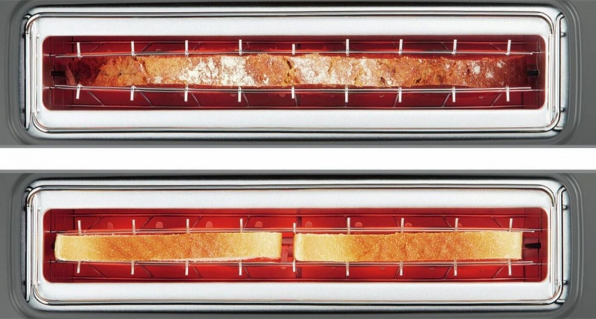• Особенности: Автоматическое центрирование тостов, Отсек для хранения провода, Подсветка кнопок, Регулировка степени обжаривания, Съемный поддон для сбора крошек, Термоизолированный корпус, Экстра-подъем тостов