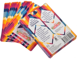 25 неожиданных заданий, запускающих цепную реакцию. Некоторые очень простые, а некоторые требуют смелости и столь популярного выхода из зоны комфорта. Например: «Подмигивай незнакомцам. Первому, кто подмигнет в ответ, отдай эту карточку» или «Обними кого-нибудь. И передай ему карточку». Рекомендуемый возраст: 18+.