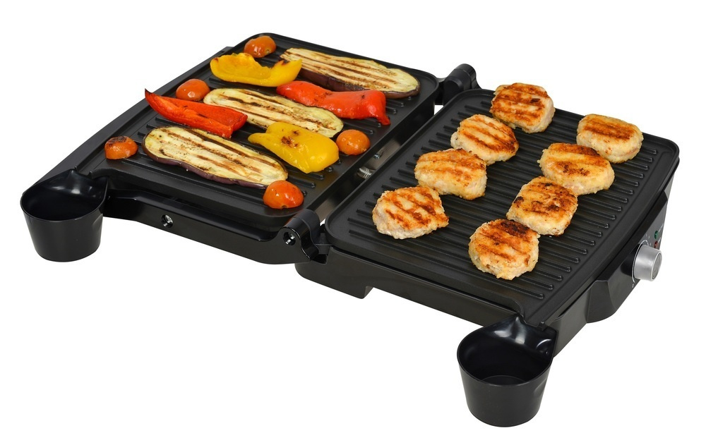 • Конструктивные особенности Поддон для сбора жира, Антипригарное покрытие, Регулировка степени прожаривания, Раскрытие на 180°, Вертикальное хранение