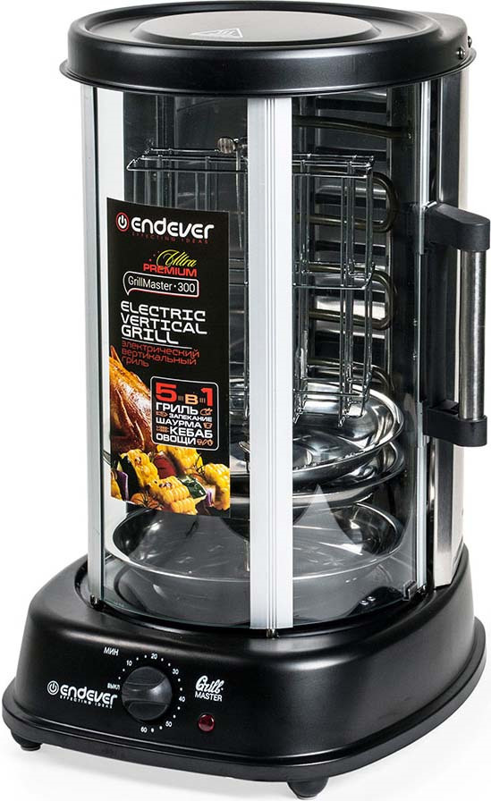 Электрический вертикальный гриль Endever Grillmaster, 300, серебристый, черный