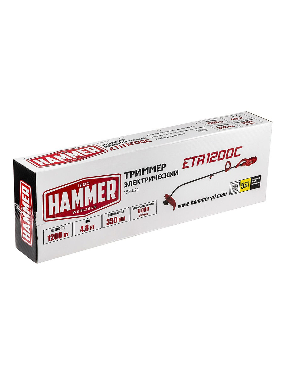 Триммер Hammer ETR1200C 1200Вт 9000об/мин леска 2мм изогнутая штанга