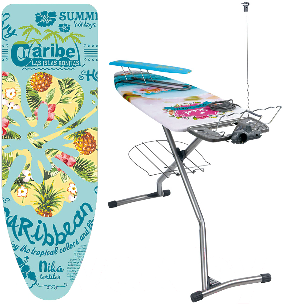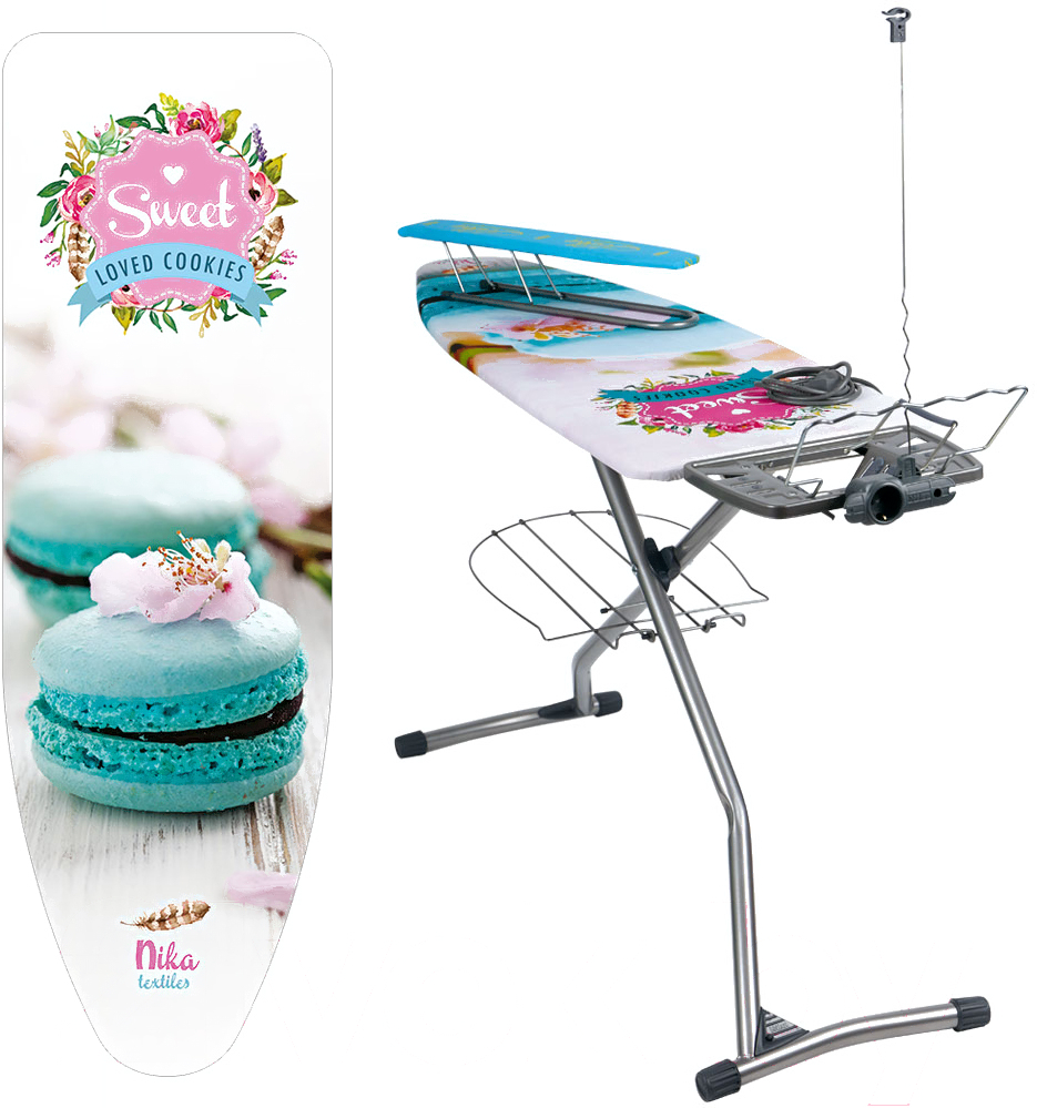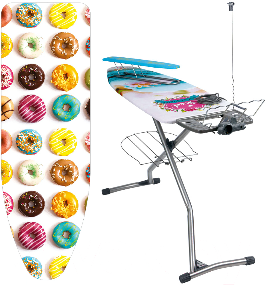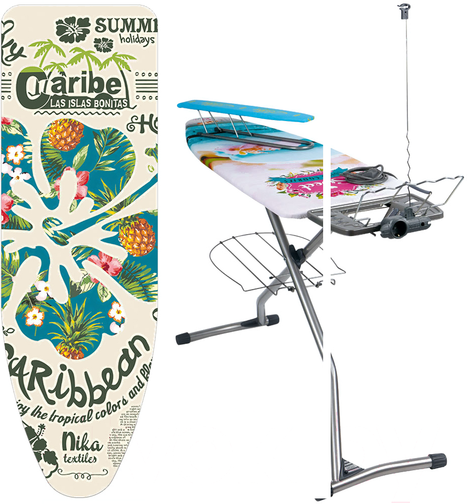 Комплектацияподставка для утюга, полка для белья (нижняя), электроудлинитель, кронштейн для провода, кронштейн для вешалок, гладильный рукав (переносной), противоскользящие насадки для ножек