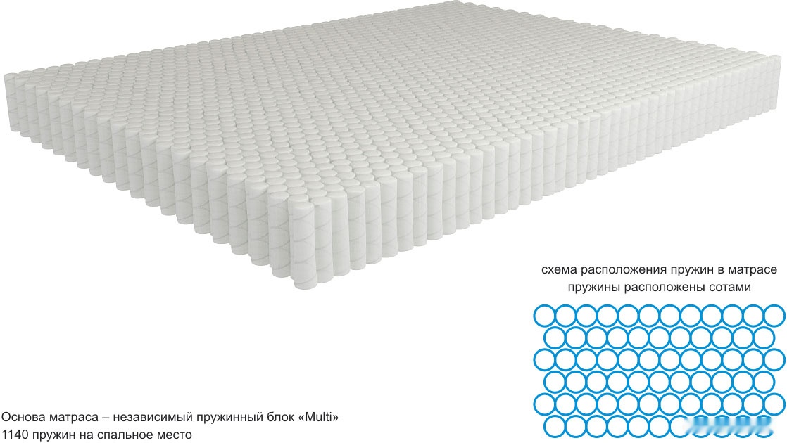 Ортопедический, независимый пружинный блок, жесткость: мягкий, 130 кг на место, высота 23 см.