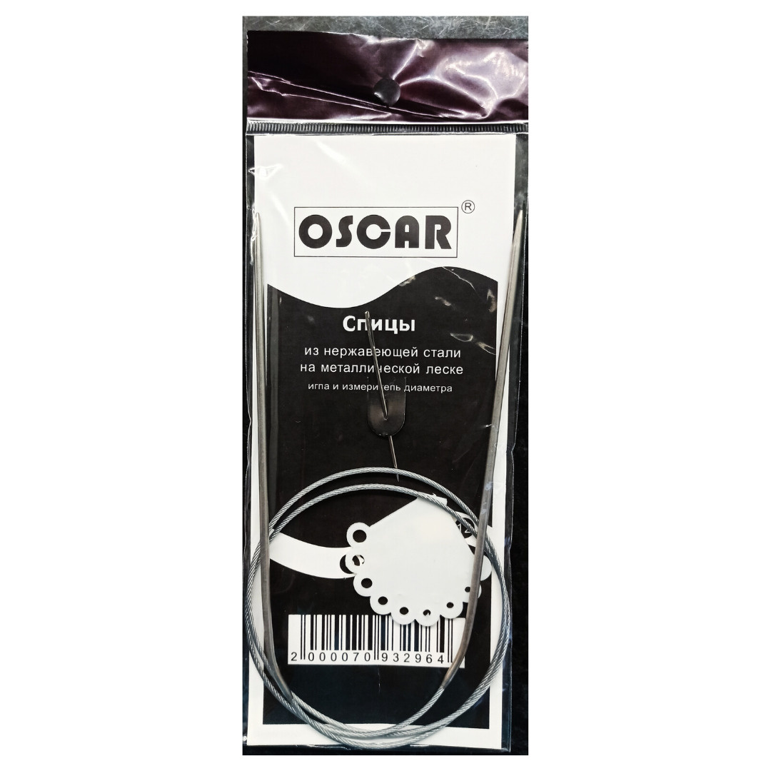 Спицы OSCAR вязальные, круговые металлические на леске, диаметр 2,5 мм., длина 80 см. с иголочкой и измерителем диаметра