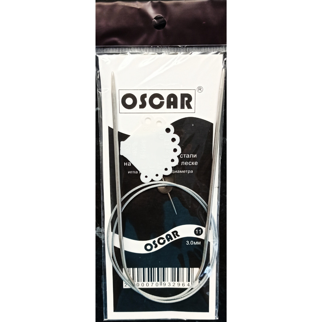 Спицы OSCAR вязальные, круговые металлические на леске, диаметр 3,0 мм., длина 80 см. с иголочкой и измерителем диаметра