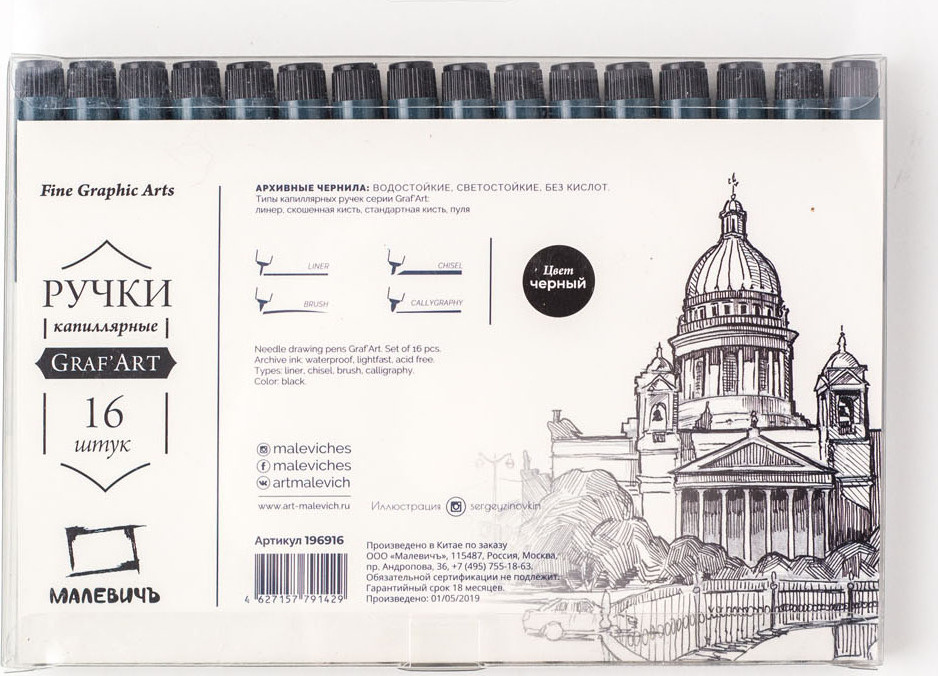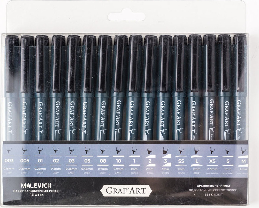 Набор капиллярных ручек Малевичъ Graf'Art, 16 шт