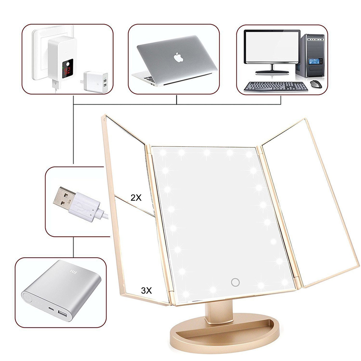 Настольное зеркало для макияжа VenusShape MI-GD с подсветкой, раскладное, золотой