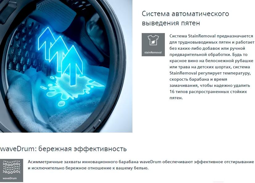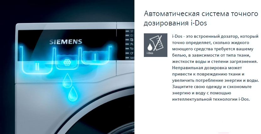 • Технологии Home Connect (Siemens), waveDrum (Siemens), i-Dos (Siemens), antiVibration (Siemens)