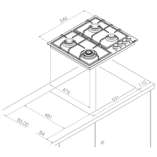 • Тип панели газовая варочная поверхность