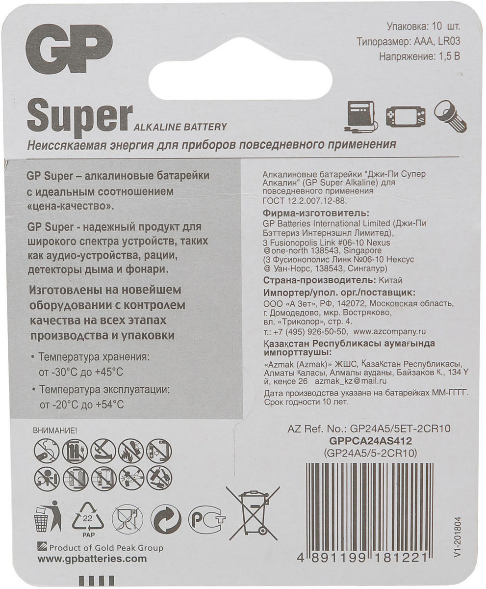 - Форм-фактор батареи AAA (LR03)