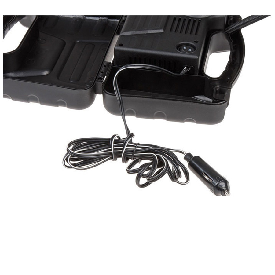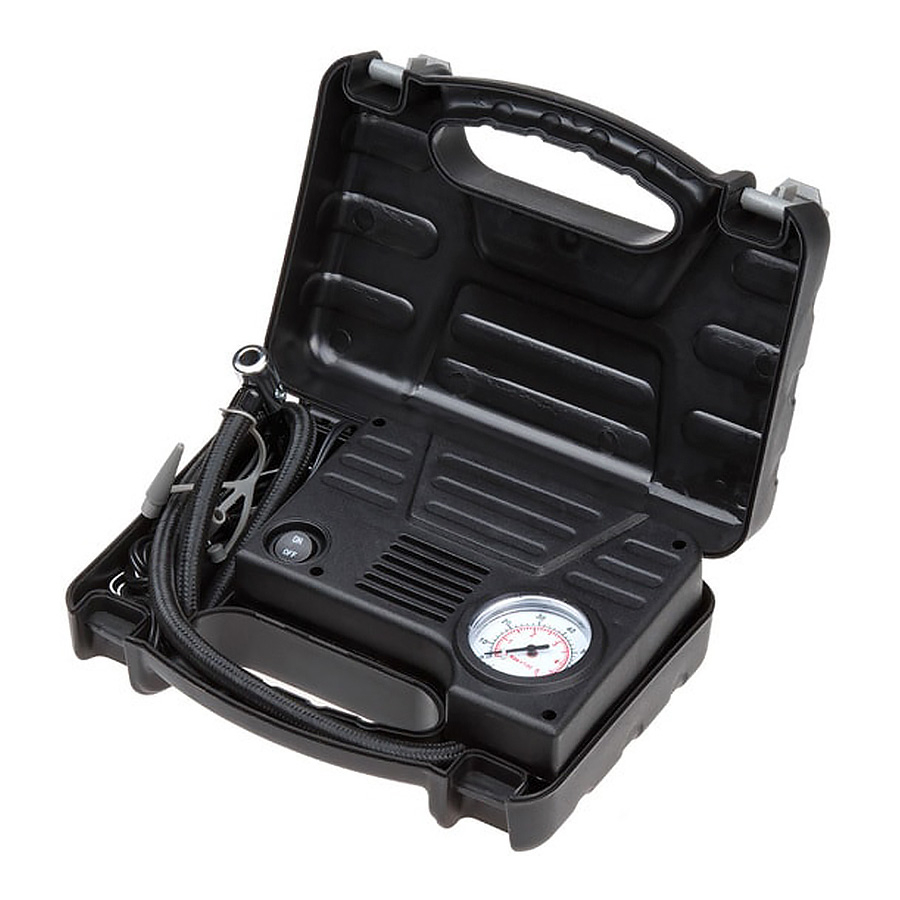 Компрессор автомобильный предназначен для накачивания автомобильных, мотоциклетных и велосипедных шин, а также небольшого надувного спортивного инвентаря, мячей и т.п. Компрессор не предназначен для накачивания больших изделий, нагнетания воздуха в воздушные ресиверы и баллоны. Работает от гнезда-прикуривателя автомобиля с напряжением 12В. Особенности: Компактная модель с органайзером для кабеля и шланга. Время накачивания колеса 195/65/R15 до давления 2 бар - 6-8 мин. Манометр градуирован до 5 бар. Быстрозажимной коннектор.
