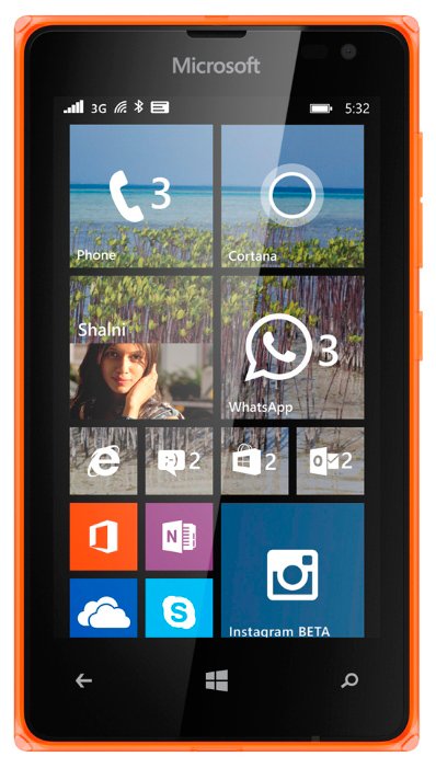 1 SIM, Windows Phone, экран 4 ", TFT, 480x800, Qualcomm Snapdragon 200 MSM8212, оперативная память 1 Гб, встроенная память 8 Гб, камера 2 Мп, аккумулятор 1560 мАч.