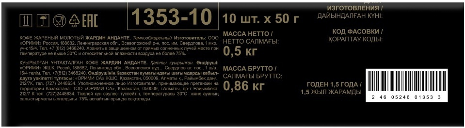 Кофе в капсулах Jardin Andante, 10 капсул по 5 г, 10 упаковок