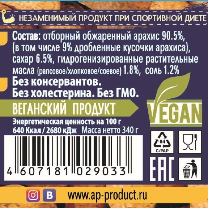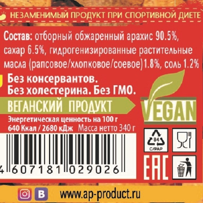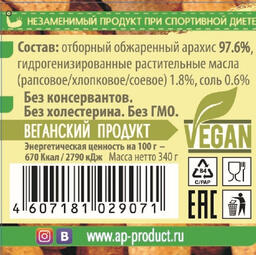 Набор Арахисовая (ореховая )паста АП (Агент Продукт) без сахара, кремовая и с кусочками 340гр*3шт