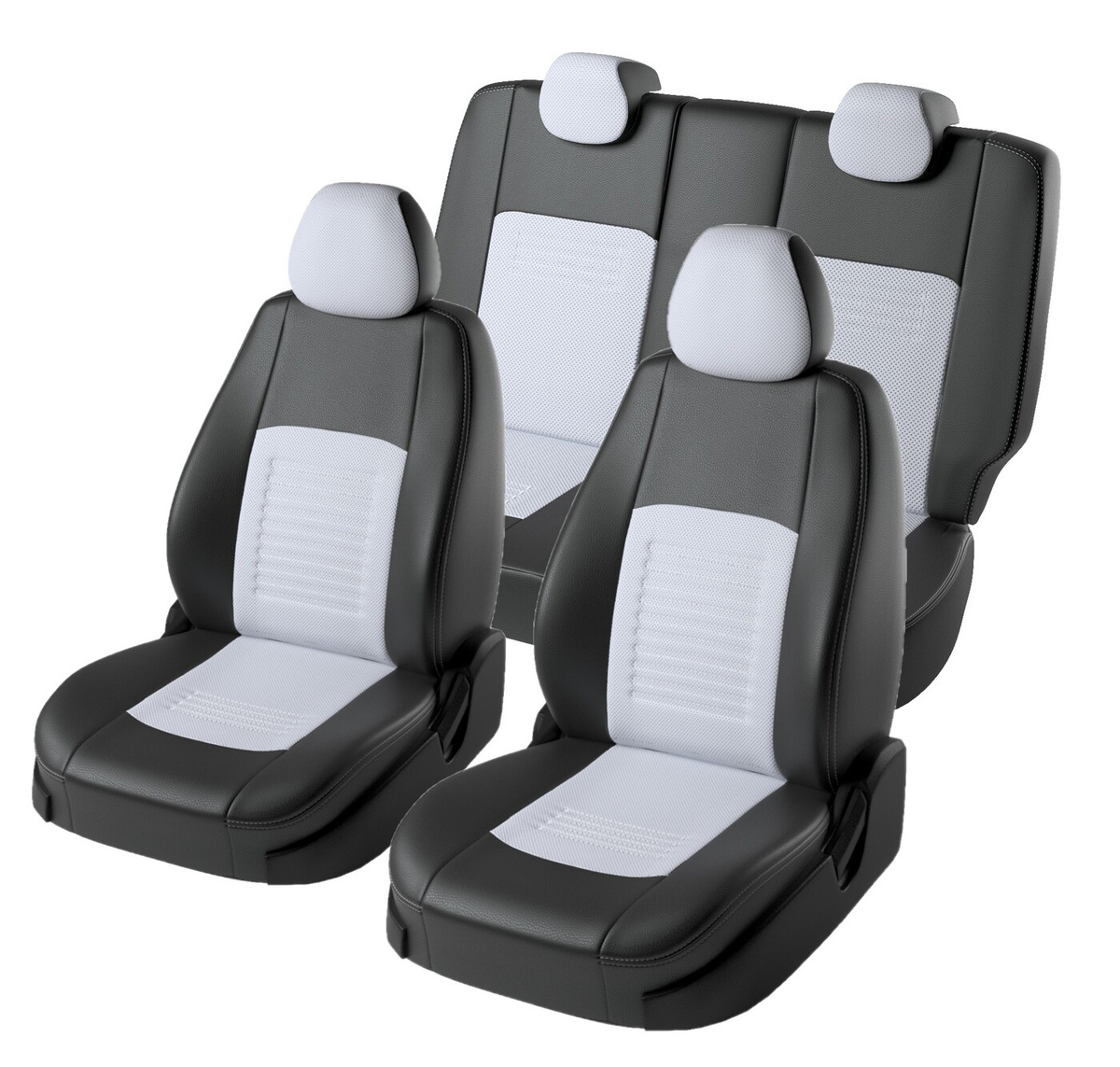 Модельные чехлы Lord AutoFashion серии Турин для Lada Granta-1 (FL рестайл. Седан / Лифтбек / Хетчбек / Универсал) Комфорт с 2018 раздельная спинка, экокожа чёрная, вставка сидений и спинок экокожа белая