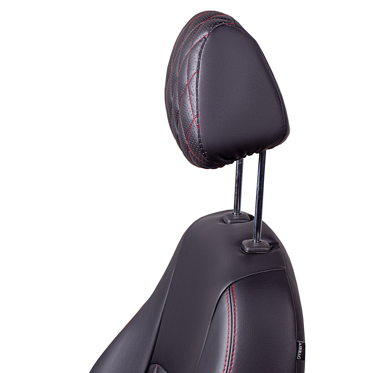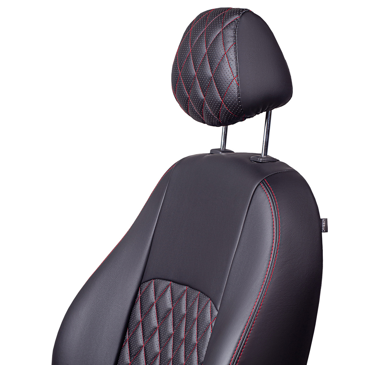 Модельные чехлы Lord AutoFashion серии Турин Ромб для Nissan Almera Classic-1(B10) с 2006 по 2012 г. цельная спинка, экокожа чёрная, стежка сидений и спинок красной нитью