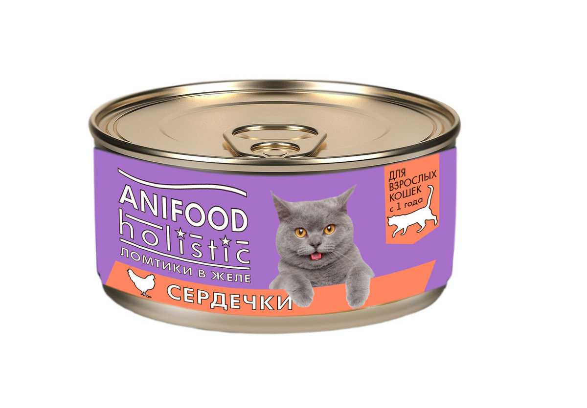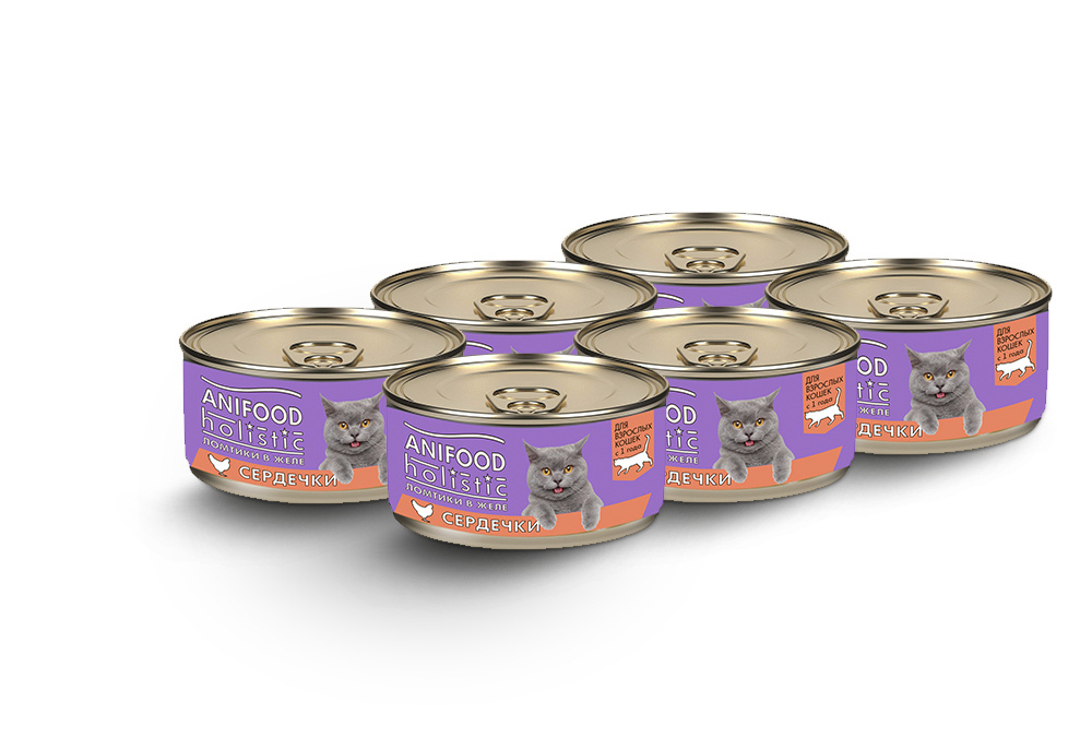 Консервы для кошек Anifood Holistic сердечки ломтики в желе, 100 гр * 6 шт