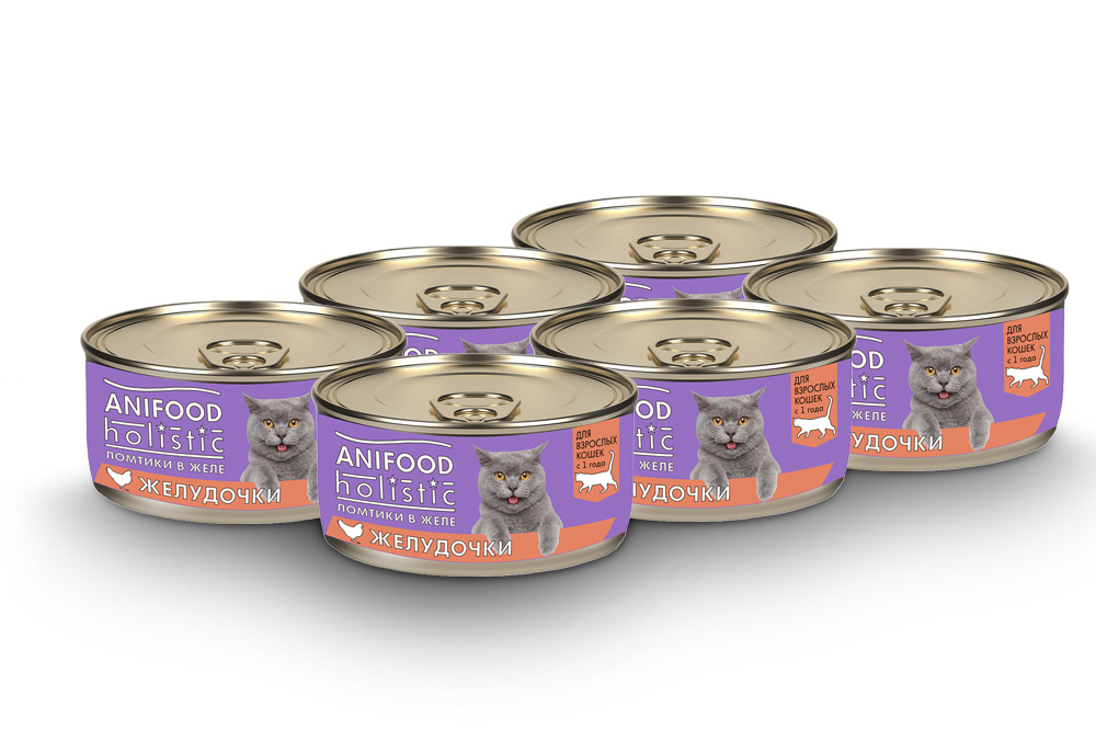 Консервы для кошек Anifood Holistic желудочки ломтики в желе, 100 гр * 6 шт