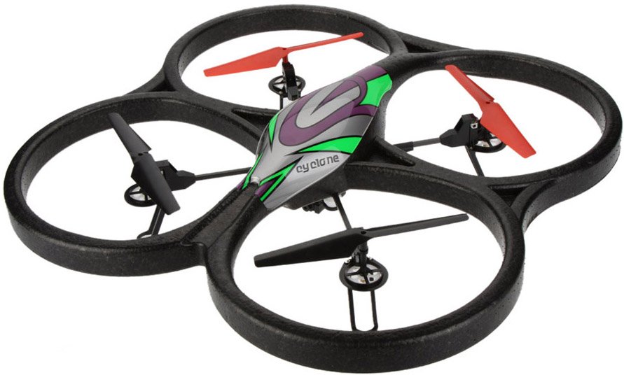 4-х канальный радиоуправляемый квадрокоптер, работающий на частоте 2.4 ГГц. Функции: движение вверх и вниз, вращение вокруг собственной оси, управление тангажом (полетом вперед-назад), управление креном (движением вбок), флипы (3D-пилотаж). HD 720 видеокамера. Аппаратура ДУ с LCD экраном и функцией First Person View (наблюдение видео в режиме реального времени, частота передачи видеосигнала: 5.8 ГГц).
