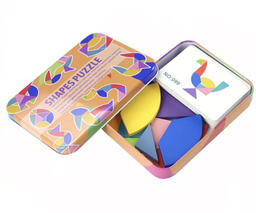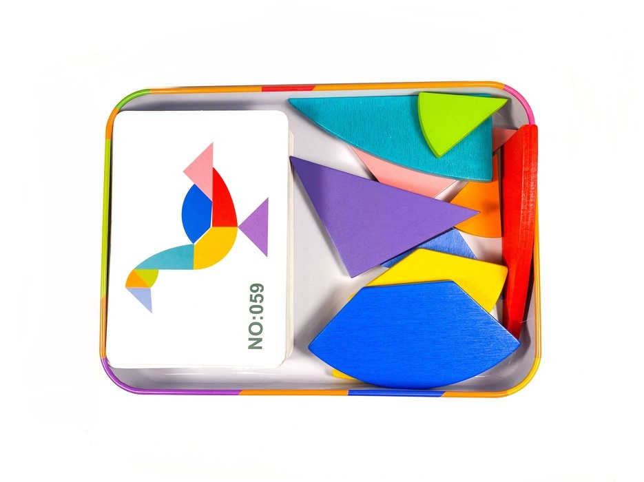 - Комплектация Упаковка: металическая коробка Детали: разноцветные деревянные геометрические фигуры Количество карточек: 100 шт.