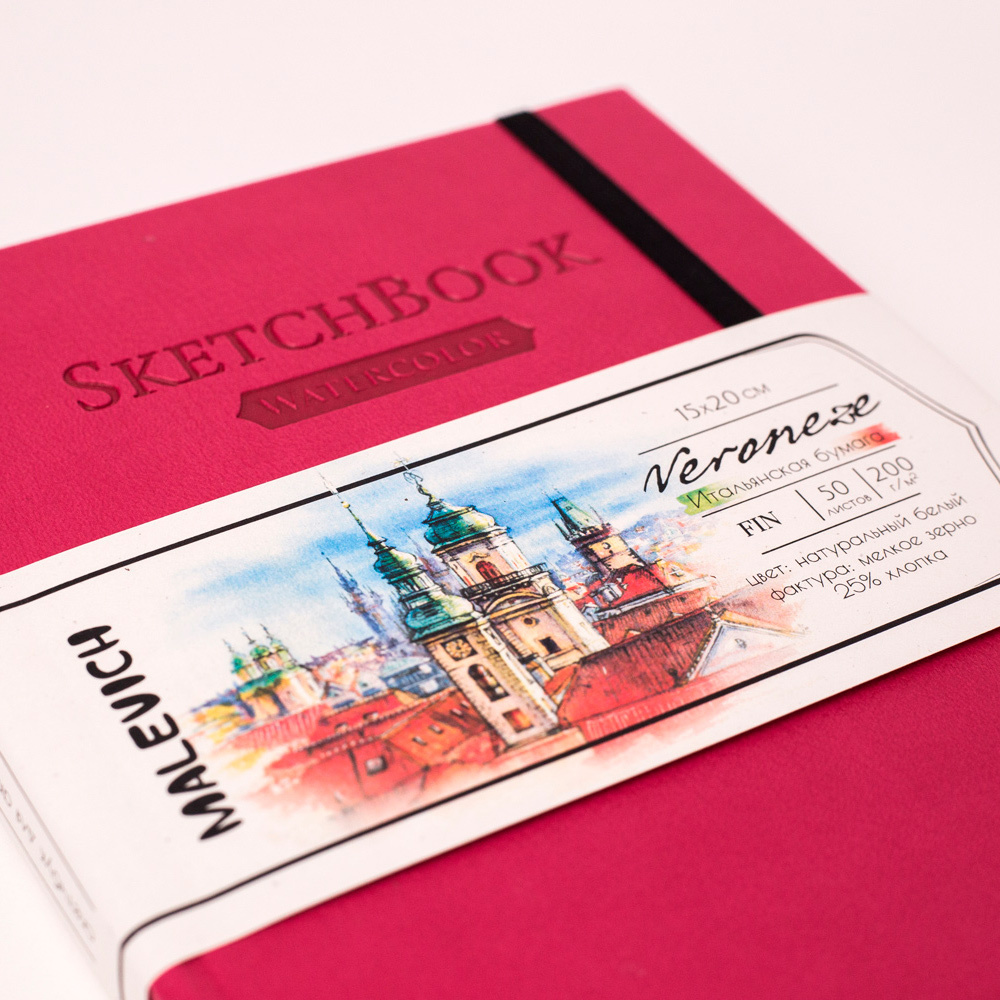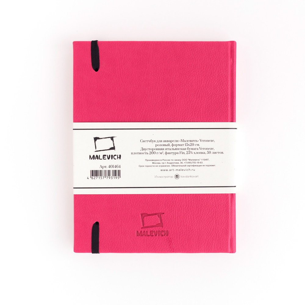 Скетчбук Малевичъ для акварели Veroneze, розовый, 200 г/м, 15х20 см, 50л