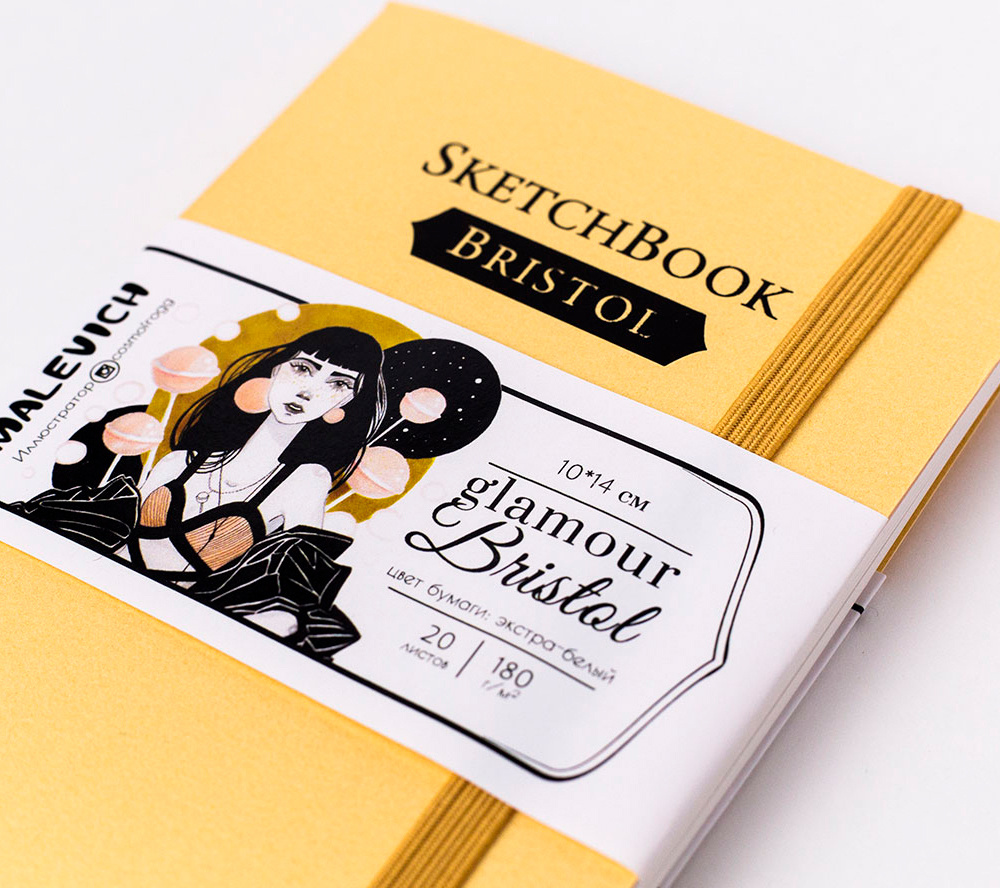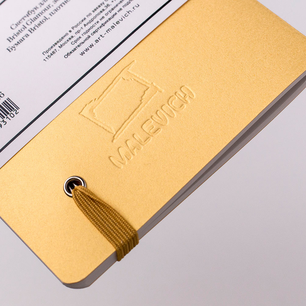 Скетчбук Малевичъ для графики и маркеров Bristol Glamour, золото, 180 г/м, 10х14 см, 20л