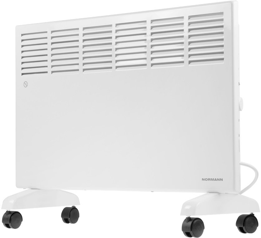 Конвектор, 2000 Вт, термостат, площадь обогрева 23 м2, механическое управление, крепление на стену настенный, напольный, отключение при перегреве, отключение при опрокидывании.
