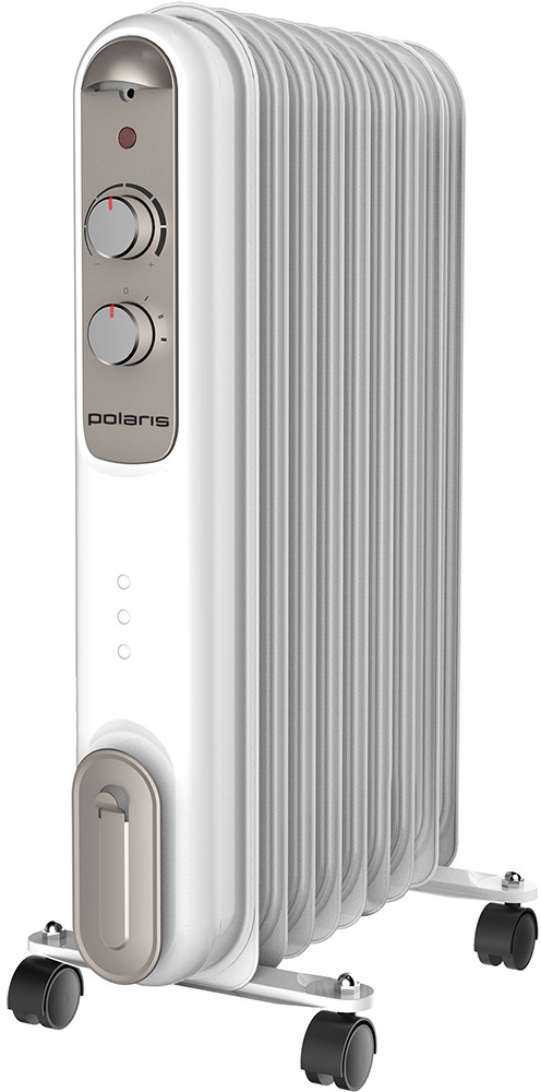 Масляный радиатор, 2000 Вт, термостат, площадь обогрева 35 м2, механическое управление, крепление на стену напольный, отключение при перегреве.