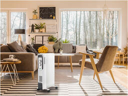 Масляный радиатор, 2000 Вт, термостат, площадь обогрева 25 м2, механическое управление, крепление на стену напольный, отключение при перегреве, влагозащита.
