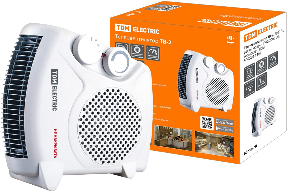 Тепловентилятор, 2000 Вт, термостат, механическое управление, крепление на стену настольный, отключение при перегреве.
