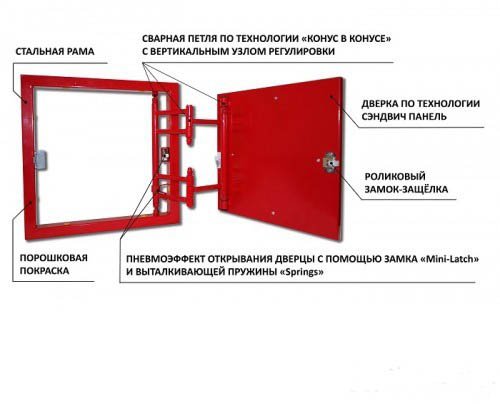 - Люк имеет специальную двухзвенную петлю, запатентованную в РФ, которая при монтаже люка сохраняет целостность рисунка облицовываемой поверхности.