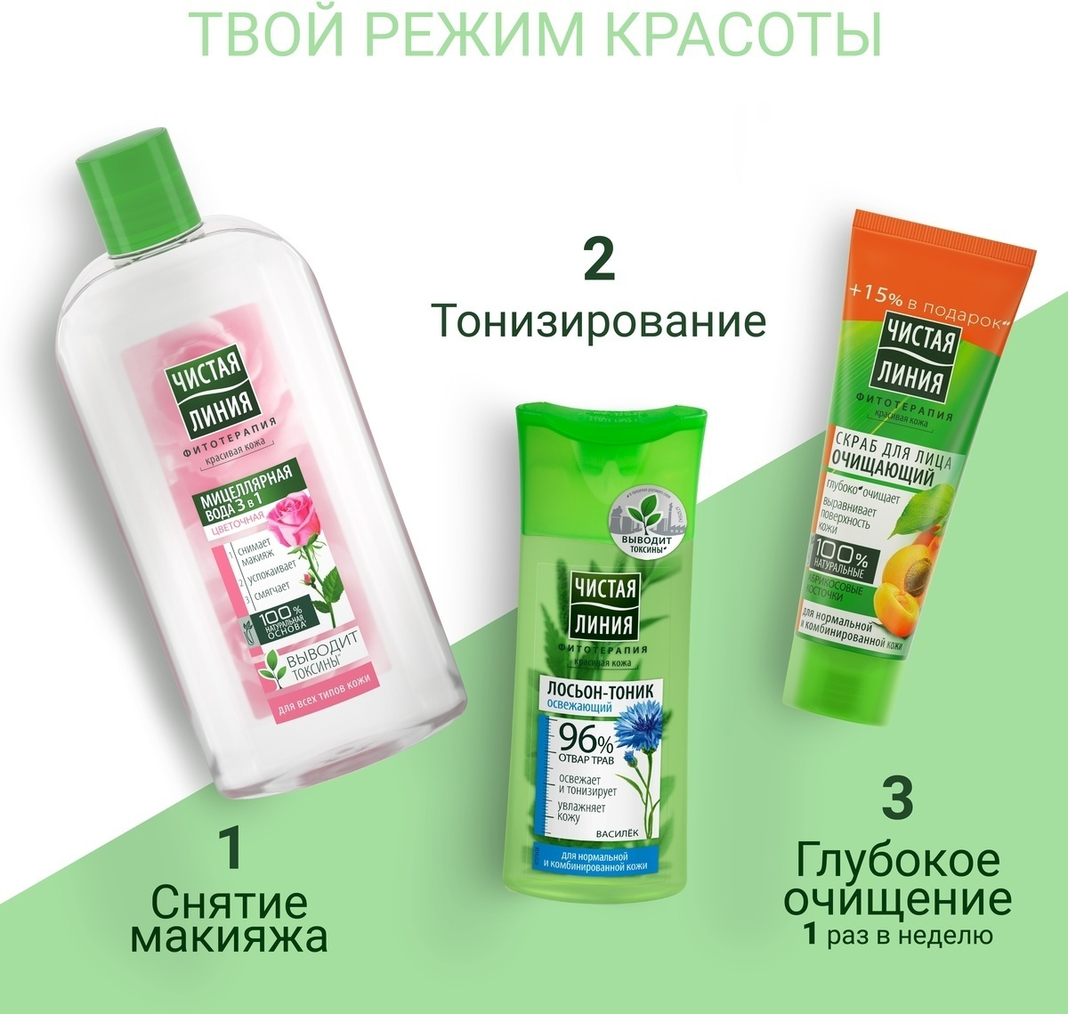 Чистая Линия Скраб абрикосовый для лица, для нормальной и комбинированной кожи, 2 шт по 75 мл