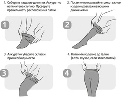 Инструкция по уходу:компрессионный трикотаж необходимо стирать ежедневно. Предпочтительна ручная стирка в прохладной воде. Допустима стирка в стиральной машине (30°С) в деликатном режиме с использованием деликатных моющих средств для цветного белья. Не используйте отбеливатели и кондиционеры. После стирки аккуратно отожмите изделие руками или в стиральной машине, повесьте сушиться. Не сушите изделие на отопительной батарее или под прямыми солнечными лучами, не подвергайте химической чистке. Чтобы избежать повреждения гольфов при надевании, используйте резиновые перчатки, особенно если у вас длинные ногти и вы носите кольца. Шершавая и ороговевшая кожа на кистях рук и стопах может быть причиной повреждения компрессионного изделия. Применение различных мазей и кремов для кожи ног допустимо, но следует учитывать, что в этом случае возможно снижение фиксирующей способности резинки на силиконовой основе. Силиконовые полоски на компрессионных чулках рекомендуется протирать слабым спиртовым раствором для улучшения фиксации чулок на коже.