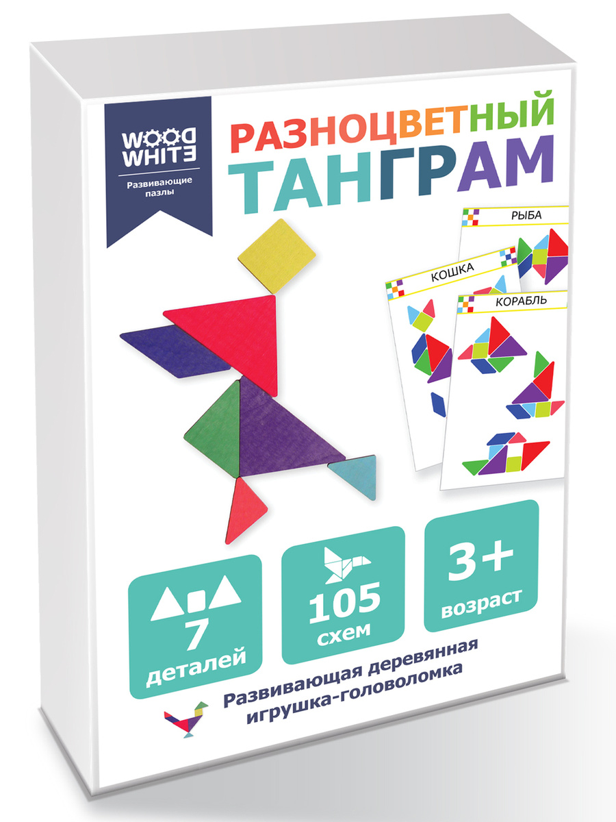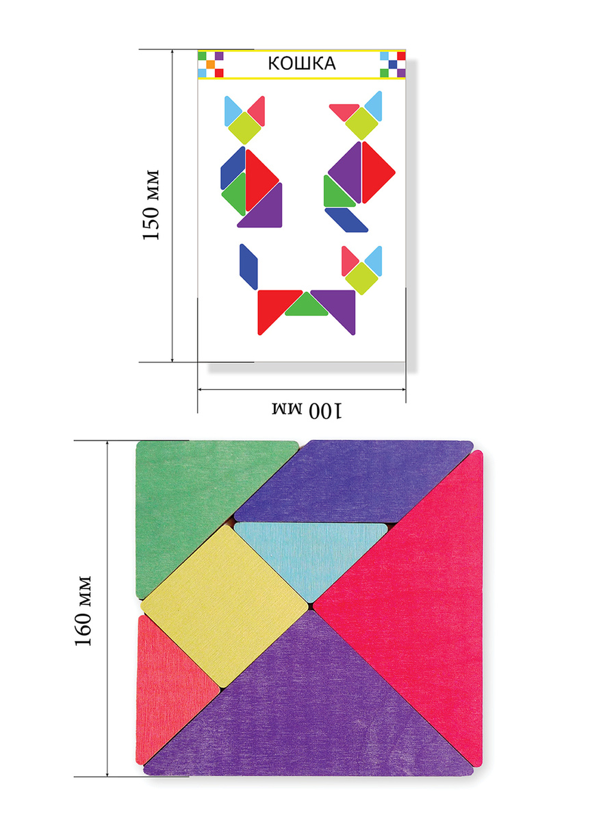 Деревянный ТАНГРАМ с карточками, 105 схем, головоломка