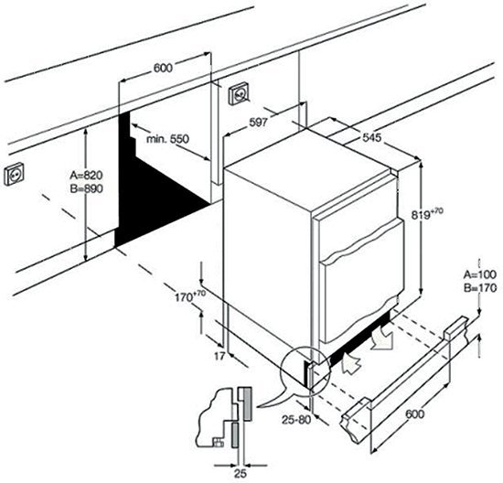 - Дополнительно Жесткое крепление фасада. Дверца перенавешиваемая, петли справа. Общий объем 105 л. Механический контроль температуры.Полезный объем 98 л. Ручная разморозка. Быстрая заморозка. 4 ящика Форма для льда.Размеры ниши для встраивания: Высота 82 — 89 см. Ширина 60 см. Глубина 55 см.