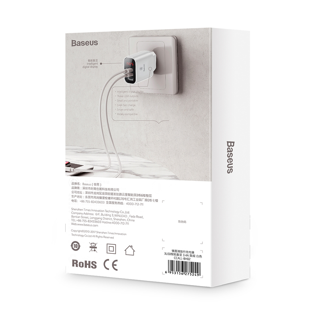 Сетевое зарядное устройство Baseus Mirror Travel Charger 3xUSB, white
