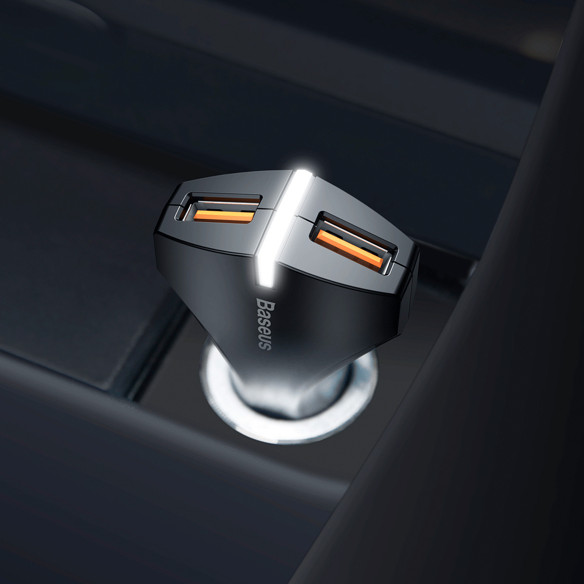 Автомобильное зарядное устройство 2xUSB Baseus Small Rocket QC3.0 Dual-USB Car Charger, black
