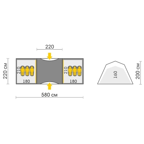 • Размеры внешней палатки (ДхШхВ) 580x220 см