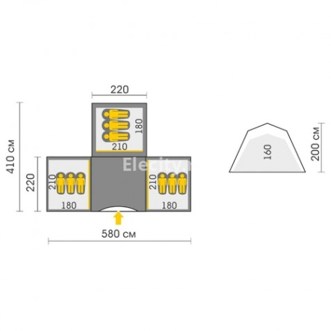 • Размеры внешней палатки (ДхШхВ) 580x400 см
