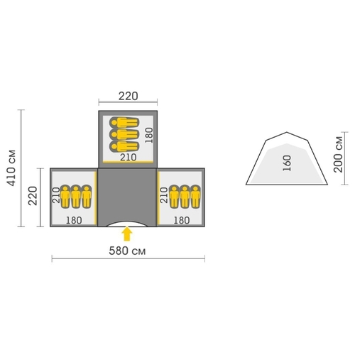 • Размеры внутренней палатки (ДхШхВ) 180x210x200 см