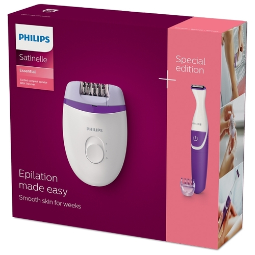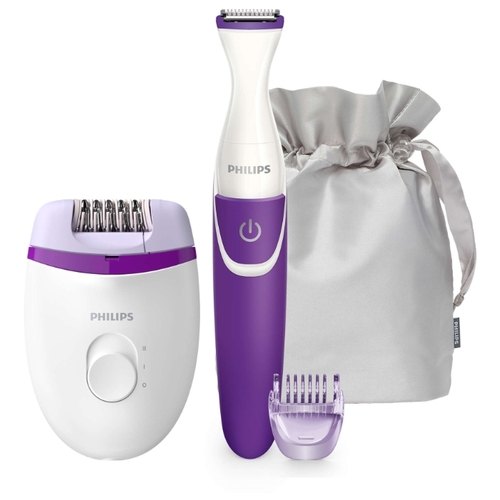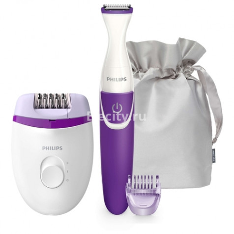Комплектация- эпилятор; - насадка-гребень для подравнивания волос до длины 3 мм; - триммер для линии бикини (работа от батарей АА); - чехол; - щеточка для чистки